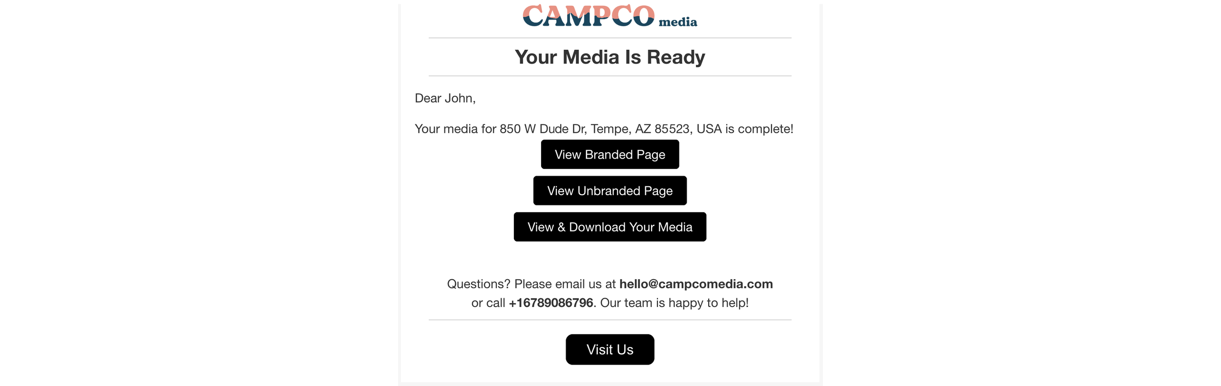 You’ll receive an email with your final media, typically within 24 hours. That email includes three links:
